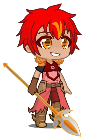 Chase has orange eyes and messy red hair. He dons the Sun's Embrace and the Monster Riders. The Sun's Embrace is an outfit with a red chest plate and short black sleeves. Underneath the chest plate, it is light red.
