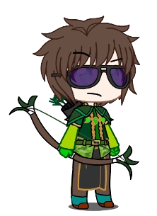 He has pale skin, scruffy brown hair, and cloudy white eyes with a hint of blue noticeable. He’s rather short and very self-conscious about it. He wears the Firefly Robes and has a quiver strapped around his back.