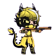 Xl4rx has a yellow dragon tail, that has a black underside and spikes. He carries two bright orange pistols.